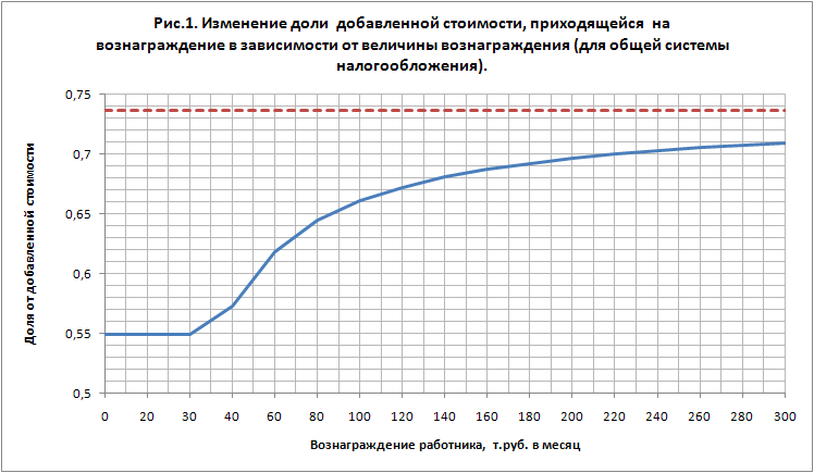 рубля. Далее, по мере увеличения оплаты труда, доля снижается и